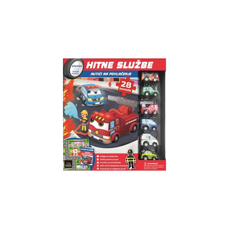 Prvo na podu složi velike puzzle (42 × 61 cm) sa slikom centra grada. Izvadi iz kutije 6 autića i postavi ih na puzzle. Svaki autić povuci unatrag, pusti ga i gledaj kamo juri! Na puzzle možeš postaviti i više od 25 različitih dodataka, kao što su vatrogasni hidranti i semafori, i tako svoj grad učiniti još zabavnijim! Nakon toga zgrabi knjigu s čak 32 stranice zabavnih zadataka i uživaj rješavajući ih. Crtaj i čitaj zanimljive priče o hitnim službama! SADRŽAJ KUTIJE: Knjiga sa zadacima Velike podne puzzle Šest autića na povlačenje Više od 25 dodataka za puzzle Ilustracija za slaganje puzzli