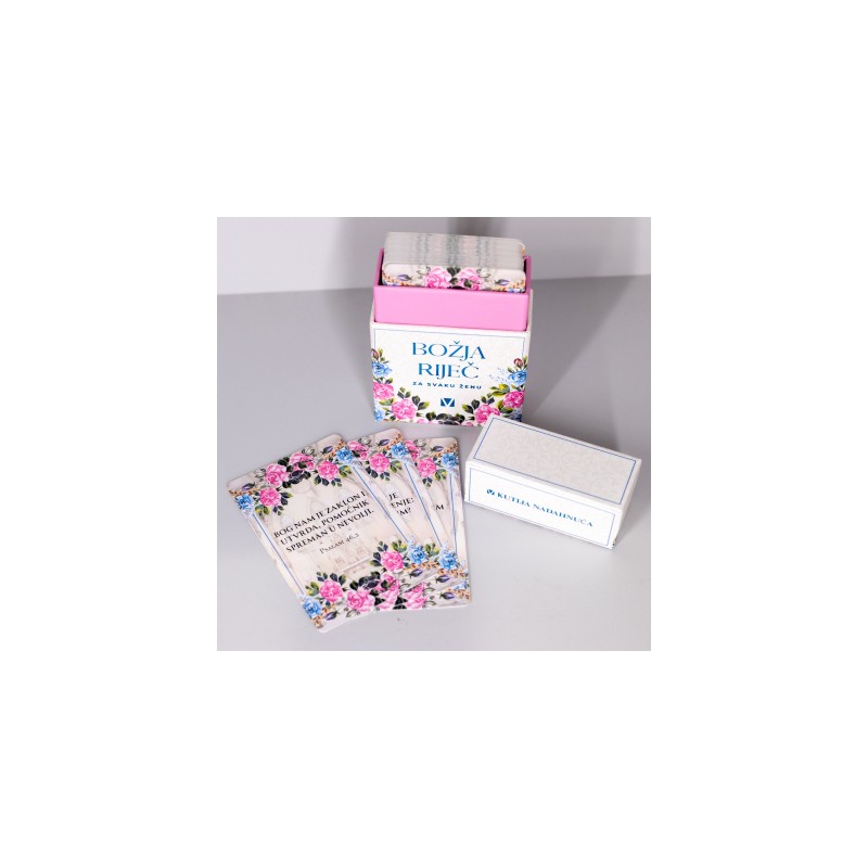 Svaka kutijica sadrži 50 dvostrano tiskanih kartica s pomno odabranim biblijskim citatima.